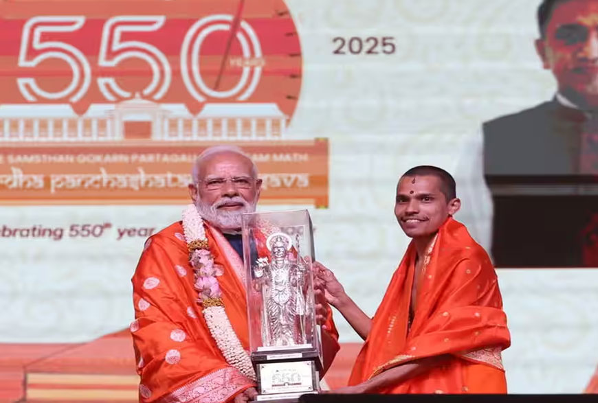 • PM Modi addresses the 550th-year celebration of the Shree Samsthan Gokarn Partagali Jeevottam Math